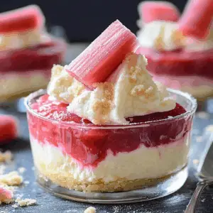 Start by preparing the rhubarb, which involves chopping it and mixing it with sugar to release its juices. While it’s resting, whip up the cheesecake mixture. Once you have both ready, layer them in serving glasses for a stunning presentation.